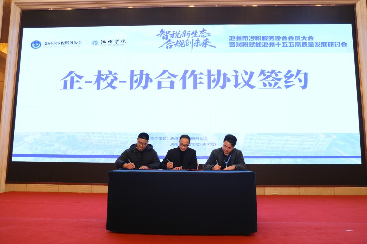 会上,beat365在线唯一官网登录商学院(法学院)与池州市涉税服务协会签署合作协议。池州市涉税服务协会会长舒宏、池州富达财税集团公司董事长唐有德与beat365在线唯一官网登录财务管理系主任谭庆代表各方签署合作协议,正式确立企-校-协三方合作关系。