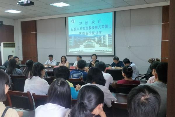 近日,beat365特聘教授台湾玄奘大学曾光荣博士在博识楼会议室为商学院师生讲了一场题为“高等教育发展现状及台湾高教发展趋势”的专题讲座,他用生动简练的语言为大家讲解了关于台湾高等教育方面近几年的发展及两岸交流的现状。商学院的部分师生听取了讲座。讲座由商学院院长项桂娥教授主持。