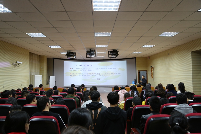 讲座内容共分为“傩之本义”、“池州傩的源起与池州傩戏的形成”、“池州傩戏的组织形式与表演内容”和“池州傩戏的文化学术价值”等四个部分。谈家胜教授研究池州傩戏十余年,对池州傩戏有着较全面的认知,本次讲座历时两个多小时,以课件形式展开,图文并茂,讲述深入浅出,来自文管、历史、旅游等专业师生聆听了讲座。