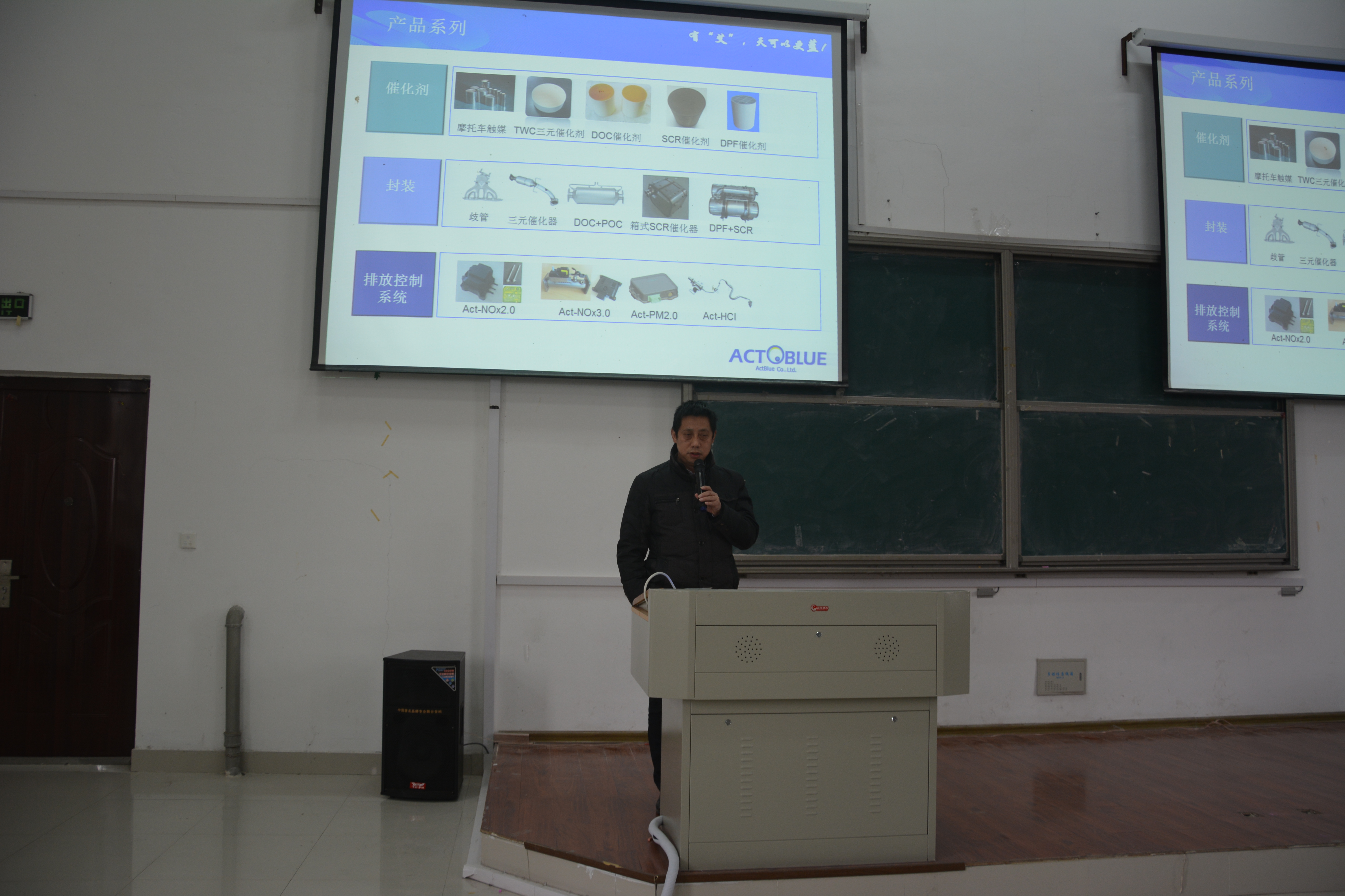 朱庆作为国家“863”专家组成员和安徽省“特支计划”专家,有着丰富的创业经验和创新理念。首先,朱庆向同学们介绍艾可蓝公司名称的由来,以及它所代表着执行蓝天计划的含义。随后,他对艾可蓝的各项技术优势及各类催化剂产品如TWCDPFSCR等进行分析介绍,在备受关注的PM2.5问题中,安徽艾可蓝节能环保科技有限公司成功研制的主动再生柴油机尾气颗粒物捕集器(DPF)”节能环保系统为降低空气中PM含量带来了福音。最后,朱庆向同学们讲述了艾可蓝的成长历程,鼓励同学们要有坚持不懈的精神,追求自己的创新创业梦想。