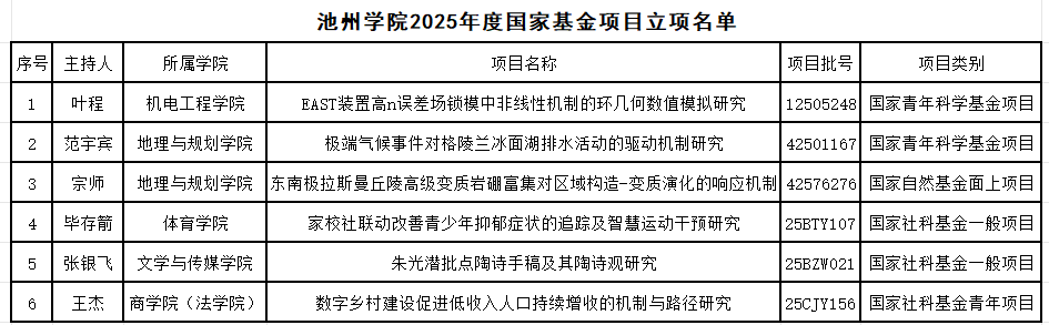 近日,国家自然科学基金委员会和全国哲学社会科学工作办公室陆续公布了2025年度国家基金项目立项结果。beat365在线唯一官网登录立项数获历史性突破,共新增国家基金项目6项,安徽省自然科学基金项目1项;其中国家自然科学基金青年项目2项,国家社科基金一般项目2项和青年项目1项,另有1位新进博士获批国家自然科学基金面上项目1项,立项数量和层次均实现新突破,充分彰显了学校有组织科研的显著成效和持续增强的创新能力。