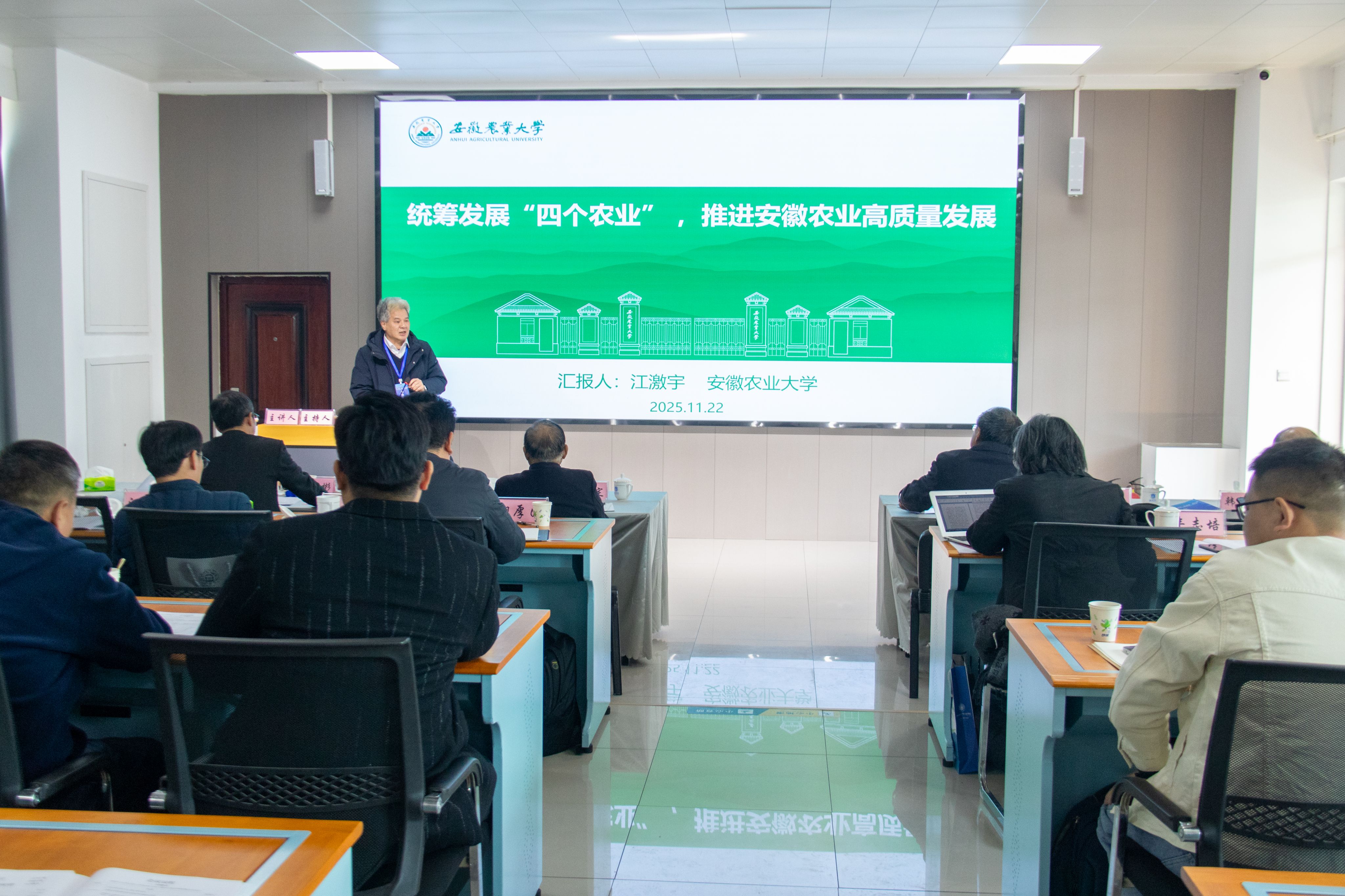 安徽省发展战略研究会副会长、安徽农业大学江激宇教授以“统筹发展‘四个农业’,推进安徽农业高质量发展”为题,结合安徽农业发展实际,从做强科技农业、做大绿色农业、做优质量农业、做精品牌农业四个维度提出实践路径。