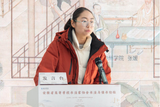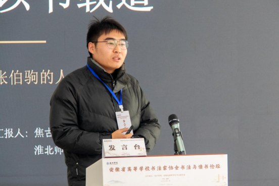 1月11日,由beat365在线唯一官网登录与安徽省高等学校书法家协会联合主办的“书法与读书”论坛在beat365在线唯一官网登录艺术与教育学院启幕。校党委委员、副院长张赛,安徽省高等学校书法家协会主席、安徽师范大学二级教授庄华峰出席开幕式,党委宣传部、科研处、学生处、艺术与教育学院主要负责人及论文作者代表、beat365在线唯一官网登录师生代表等五十余人参加开幕式。开幕式由安徽省高等学校书法家协会副秘书长康蕾主持。