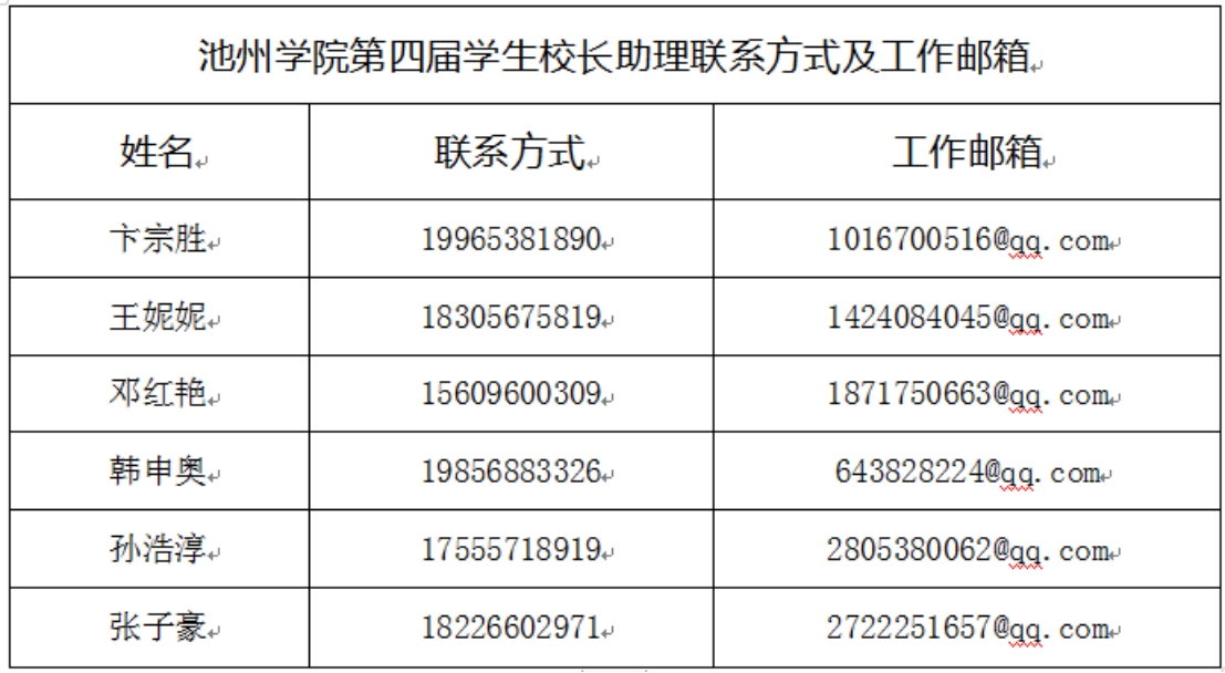 附件:beat365在线唯一官网登录第四届学生校长助理联系方式及工作邮箱