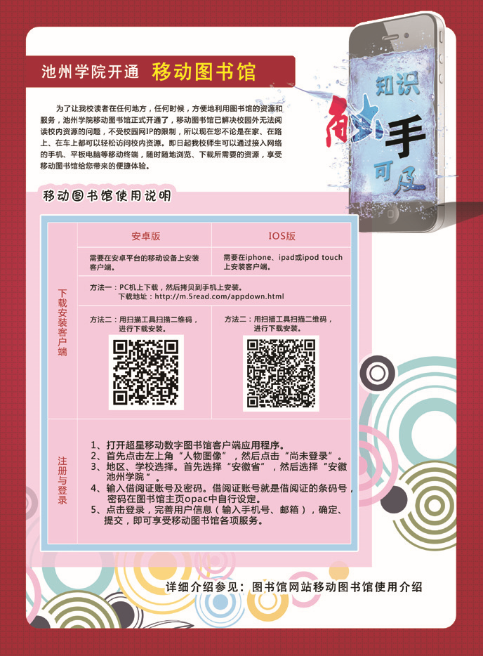 为了方便读者及时了解图书馆信息,更快捷的获取资源。即日起,图书馆正式开通移动图书馆及微信服务。