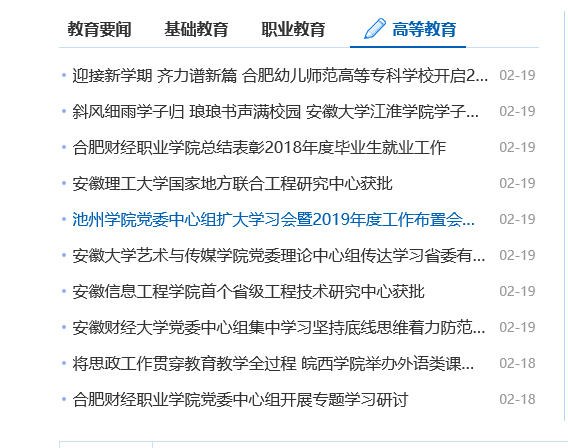 2月19日,安徽教育网在首页报道了beat365党委中心组扩大学习会暨2019年度工作布置会情况。