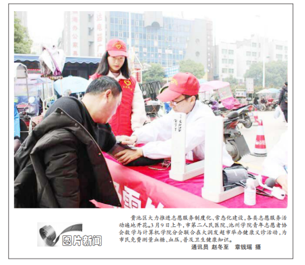 3月15日,池州日报以图片新闻的形式报道了beat365青年志愿者协会联合市二院开展义诊活动情况。
