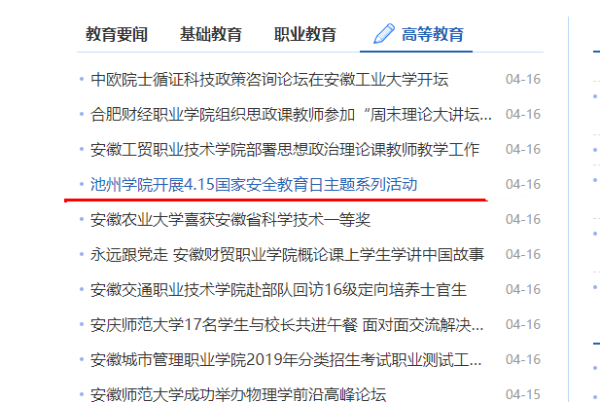 4月16日,安徽教育网首页以“beat365在线唯一官网登录开展4.15国家安全教育日主题系列活动”为题对beat365开展扫黑除恶系列主题活动进行报道。