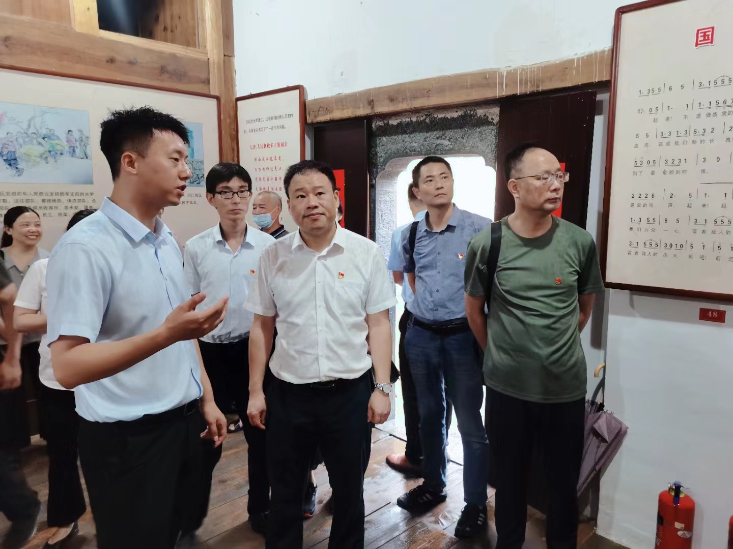 宣传部党支部书记汤文益创新形式,把党课讲到田间地头,融入到实景课堂中,讲了一堂生动的“红色教育现场课”。他号召广大党员同志要传承革命传统、赓续红色血脉、坚定理想信念、加强党性修养、不断自我革命,以实际行动迎接党的二十大胜利召开。