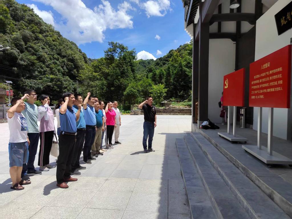 参观结束后,支部书记、校办公室主任方文利同志带领全体党员在纪念馆门前面向鲜红党旗,高举右手,重温入党誓词,进一步领悟共产党人的初心和使命。
