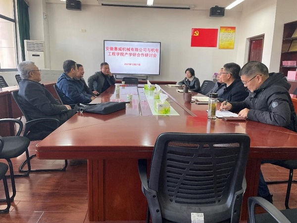 12月21日上午,池州市经信局信息化办公室主任朱良才、安徽塞威机械企业有关人员来beat365机电工程学院考察调研。机电工程学院党委书记王永金、院长孙佐、副书记冯淑慧等领导和机械教研室汪列隆教授出席座谈会。