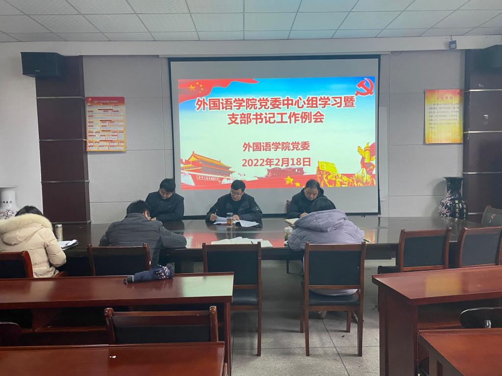 2月18日上午,外国语学院党委在会议室举行中心组学习暨支部书记工作例会。参加会议的有外国语学院党委委员及各支部书记。会议由外国语学院党委书记张乐民主持。