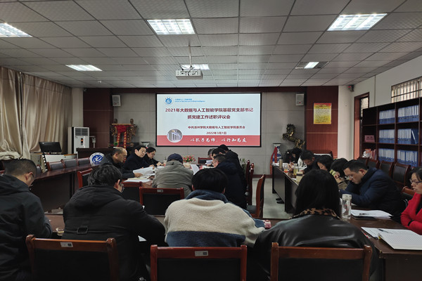 3月1日,大数据与人工智能学院举行2021年度基层党支部书记抓党建工作述职评议会,学院联系领导校党委书记孙晓峰应邀到会指导并讲话,组织部相关负责人、学院党政领导班子、科级干部、各党支部书记及全体支委、专职组织员、专职辅导员、教师代表、学生代表参加,院党委书记宛明高主持会议。