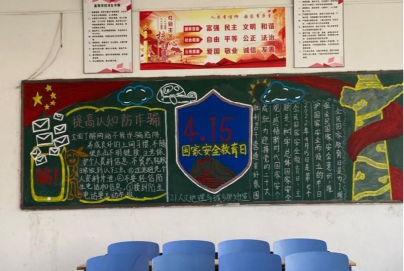 4月18日针对新生班级开展了“全民国家安全教育日”主题黑板报评比活动,活动通过绘制主题黑板报使更多同学掌握国家安全知识,增强国家安全意识,认识到维护国家安全是每个公民义不容辞的责任。