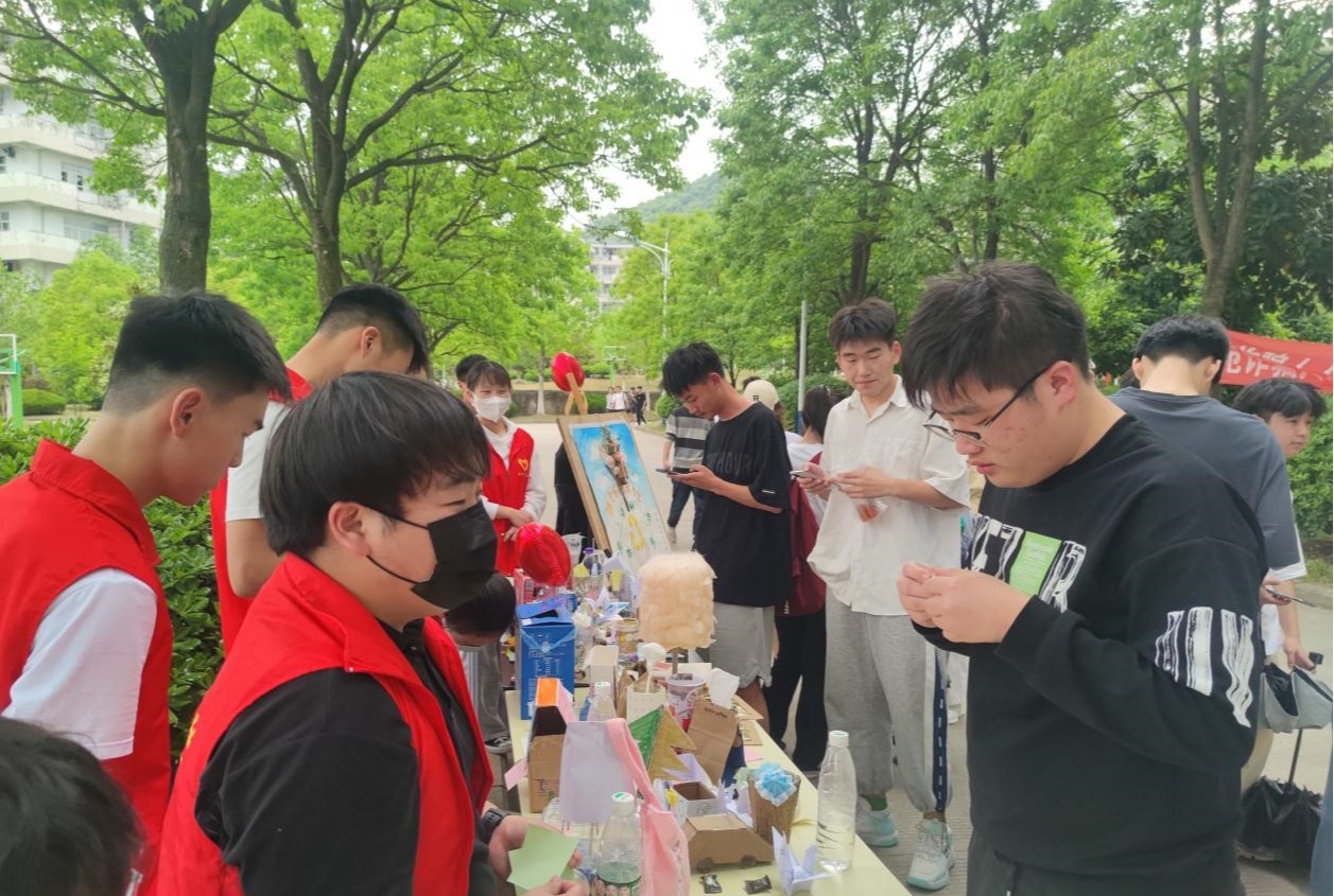 在“随手环保,变废为宝”活动中,同学们利用生活中的废弃物品,制作出了一件件创意无限、独具特色的作品。有废纸壳做出的小船、塑料瓶做成的花朵、易拉罐做成的小滑板等等。