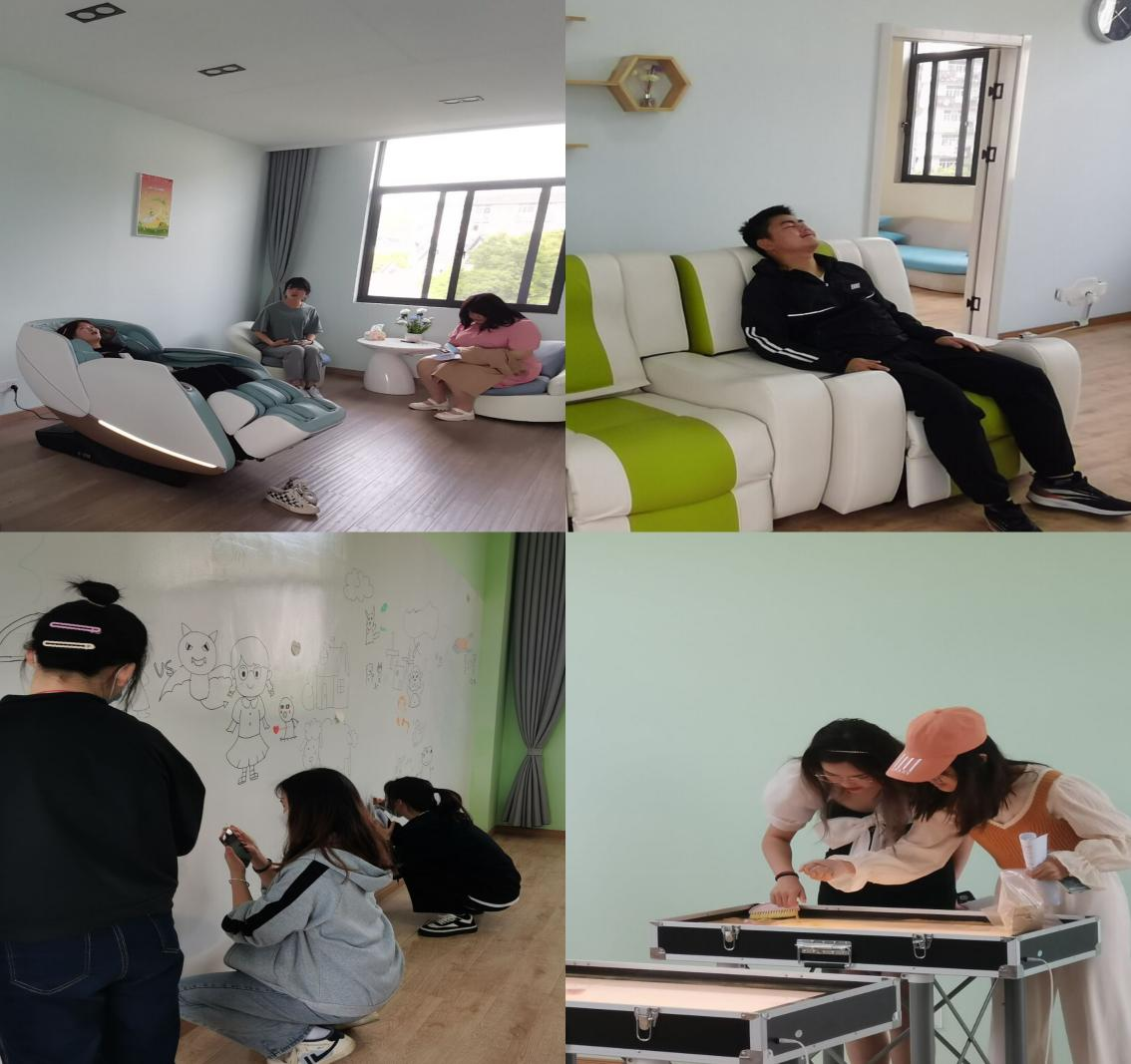 宣誓仪式结束后,心理学干对心理健康教育中心的设备进行了体验,他们在音乐放松室体验放松,在宣泄室感受减压,在艺术疗愈室进行创造,在园艺疗愈室感悟生命,现场气氛热烈。活动在一片欢声笑语中结束。