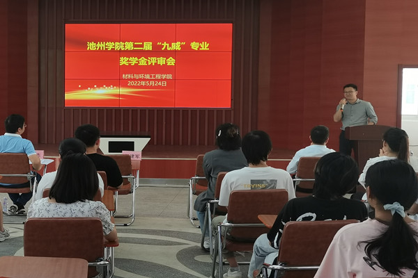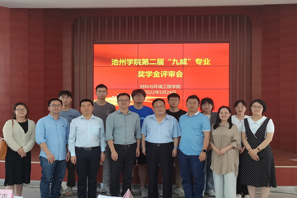 5月24日下午,材料与环境工程学院“九威”专业奖学金评审活动在大学生活动中心举行,池州九威新材料有限公司副总经理郭建军、学生处副处长吴继承、材环学院党政班子及教师代表出席了评审活动,2019级和2020级高分子专业学生代表近30人观摩了评审现场。