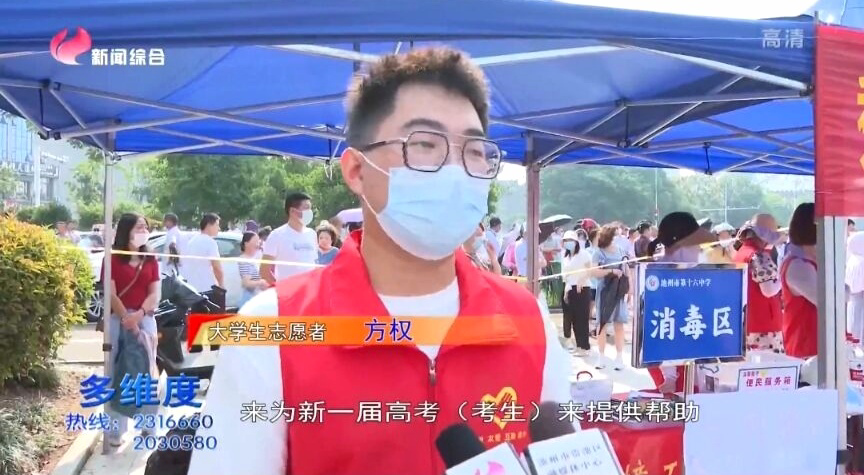 考点门口,志愿者们搭建“爱心驿站”, 准备矿泉水、药箱等爱心物品,为考生家长提供舒适的等候区,为考生递上矿泉水,送去温暖祝福缓解他们紧张的心情,并协助交警,积极维护考场外秩序,疏通道路人群,营造安全有序的交通环境。志愿者们不畏酷热、坚守岗位,服务考生和家长,及时处理突发情况,赢得了考生家长一致称赞。