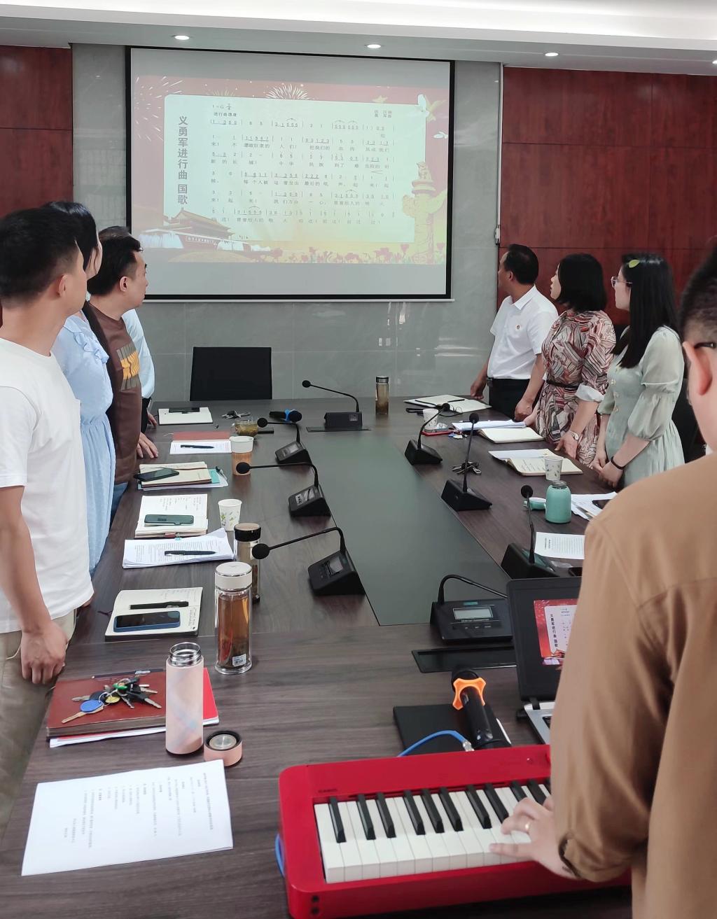 活动开始,王成向大家介绍了钢琴的基本构造和基础乐理,分享了音乐对个人和团队发展影响的个人感悟,同时现场演奏了三种不同形式和音乐风格的钢琴作品,让大家感受到了音乐触及心灵的魅力和感染力。其后,同志们两两组队走到钢琴前,分弹右手和左手,顺利完成了《小星星》的乐曲弹奏,现场氛围热烈,让彼此间切实体会到了协同合作的愉悦感和成就感。最后,活动在钢琴伴奏和全体同志齐唱《义勇军进行曲》中落下帷幕。