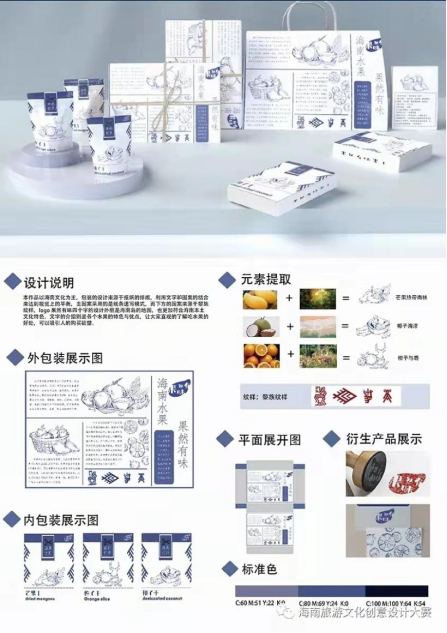 据悉,在由全国艺术专业学位研究生教育指导委员会、海南省宣传部、海南省旅游和文化广电体育厅、海南省教育厅、海南省工信厅、海南大学、海上丝绸之路艺术教育联盟主办的“2021年第四届国际大学生旅游文化创意设计大赛”活动中,beat365在线唯一官网登录艺术与教育学院2018级视觉传达设计专业胡蕊同学的设计作品《海南旅游文化--特色水果包装设计》(指导老师:顾彦力)获包装设计组优秀奖。