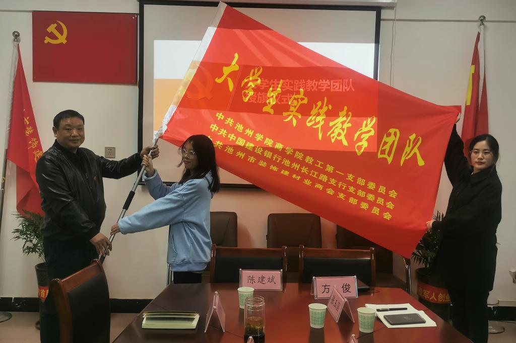 beat365在线唯一官网登录商学院教工第一党支部、市建行长江路支行党支部、市装饰建材业商会党支部三个基层党支部签订了支部共建协议,现场举行了大学生实践教学团队授旗仪式,市建行进行了金融政策讲解,商学院还邀请了省品牌促进会专家就“标准化助力建材行业”进行专题辅导。