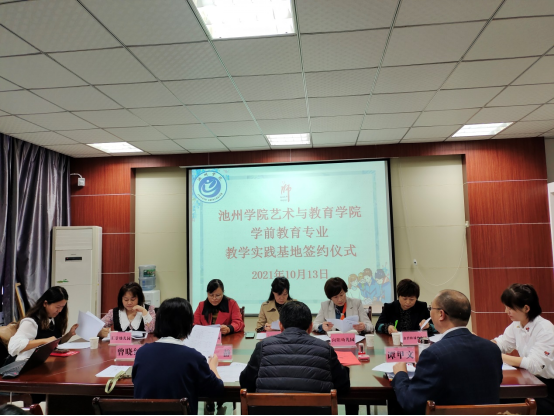 为加强学前教育师资队伍建设,提高毕业生的培养质量,服务地方幼教事业的发展,10月14日下午,艺术与教育学院学前教育专业牵手池州市直幼教集团、贵池区幼儿园、汇景幼儿园、向阳幼儿园、金碧秋浦幼儿园共建教育实践基地签约仪式在艺术楼三楼会议室举行。艺术与教育学院书记杨静、院长魏鸿飞、学前教育教研室全体教师、各幼儿园相关负责人及部分学生代表出席了签约仪式,签约仪式由学前教研室主任谭甲文主持。