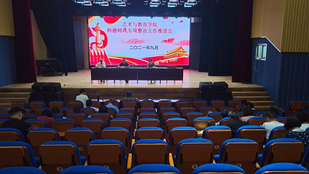 9月22日下午,艺术与教育学院在音乐厅召开了师德师风整治工作专题推进会,学院全体教职工参加了会议,会议由院长魏鸿飞主持。