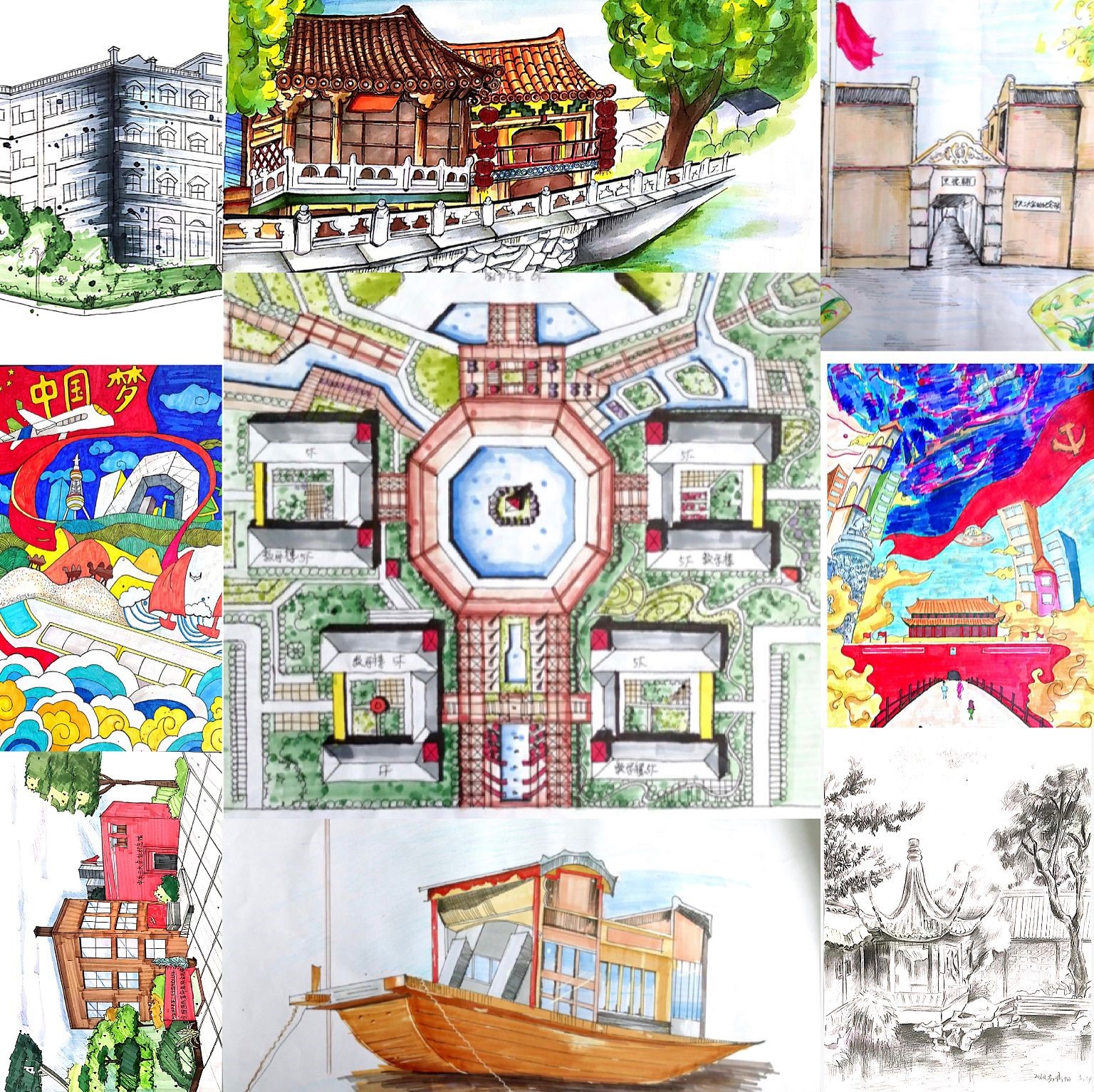 此次大赛将党史学习与专业技能比赛相结合,引导同学从党史学习中汲取力量,激发青年学子的爱党爱国热情和家国情怀,同时提高学生的手绘和设计能力,帮助学生提升专业技能,以实际行动和优异成绩向建党100周年献礼。