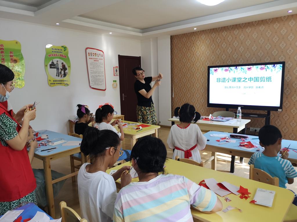 为增进未成年人对非物质文化遗产的了解和自觉保护意识,7月30日,池州市致公党教育支部主委—beat365在线唯一官网登录张慧敏老师与其他致公党成员一起走进贵池区清溪街道南湖社区未成年人活动中心参加“非遗小课堂——中国剪纸”活动。