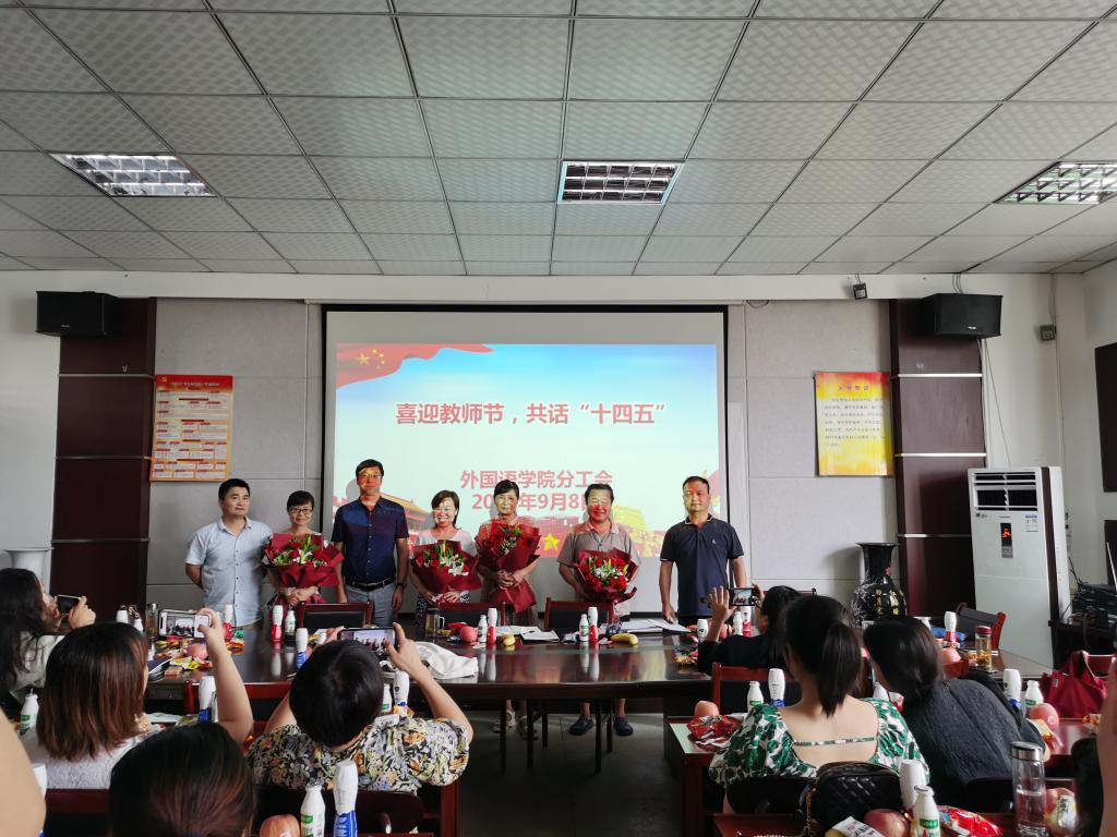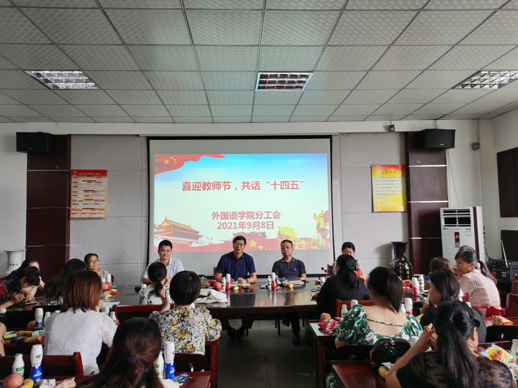 为庆祝第37个教师节,外国语学院分工会于9月8日下午在会议室举行“喜迎教师节,共话‘十四五’”教师座谈会。共有40多位老中青教师参加了座谈会。座谈会由外国语学院党委书记张乐民主持。