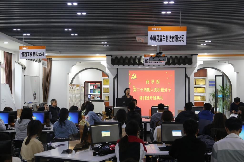 4月21日下午,商学院第二十四期入党积极分子培训班开班典礼在博识北二楼跨专业综合实训室隆重举行,商学院党政领导、科级干部、各党支部书记及140名受训学员参加了开班典礼。开班典礼由院长项桂娥主持。