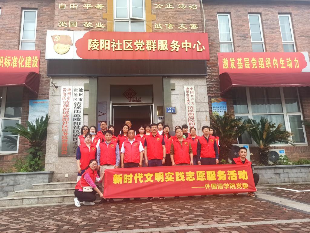 为加强党史学习教育,为群众办实事,发挥党员先锋模范作用,外国语学院党委于513日上午赴池州陵阳社区开展新时代文明实践志愿服务活动。