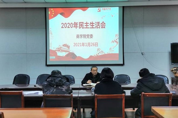 1月26日下午,商学院党委在会议室举行2020年度民主生活会。校领导汪海到会指导,学院班子成员参加了会议,学院科级干部、各支部书记列席会议。会议由学院党委书记罗志刚主持。
