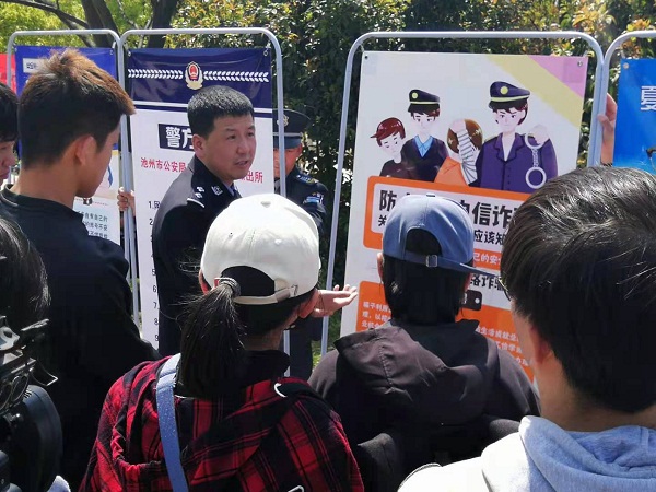 为促进全校学生进一步增强预防电信网络诈骗的意识和能力,有效遏制电信网络诈骗案件频发高发势头,4月9日中午,beat365学生处、保卫处、贵池公安分局马衙派出所联合举办了“防电诈•普法制”宣传教育活动。