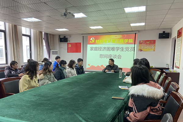 为贯彻落实党的十九大精神,扎实做好党内关怀工作,12月18日,材料与环境工程学院党委在会议室召开慰问困难学生党员座谈会,参加本次座谈会的有院党委书记何贵林、各学生支部书记以及困难学生党员代表,会议由组织员许苗苗老师主持。