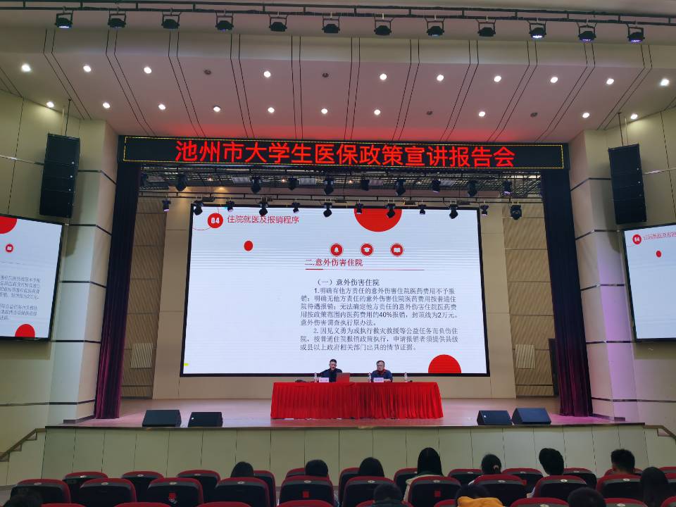 报告会上,陶立新详细解读了大学生医保的性质,参保程序,大病保险政策以及普通门诊就医及报销程序、慢性病门诊就医及报销程序、住院就医及报销程序和报销比例等池州市大学生医保政策,宣讲了医保电子凭证应用推广的意义及激活工作要求,对现场咨询的寒暑假、实习等法定不在校期间学生就医报销以及流浪狗咬伤意外伤害、疫情防控核酸检测费用等就医热点问题进行了积极回应。
