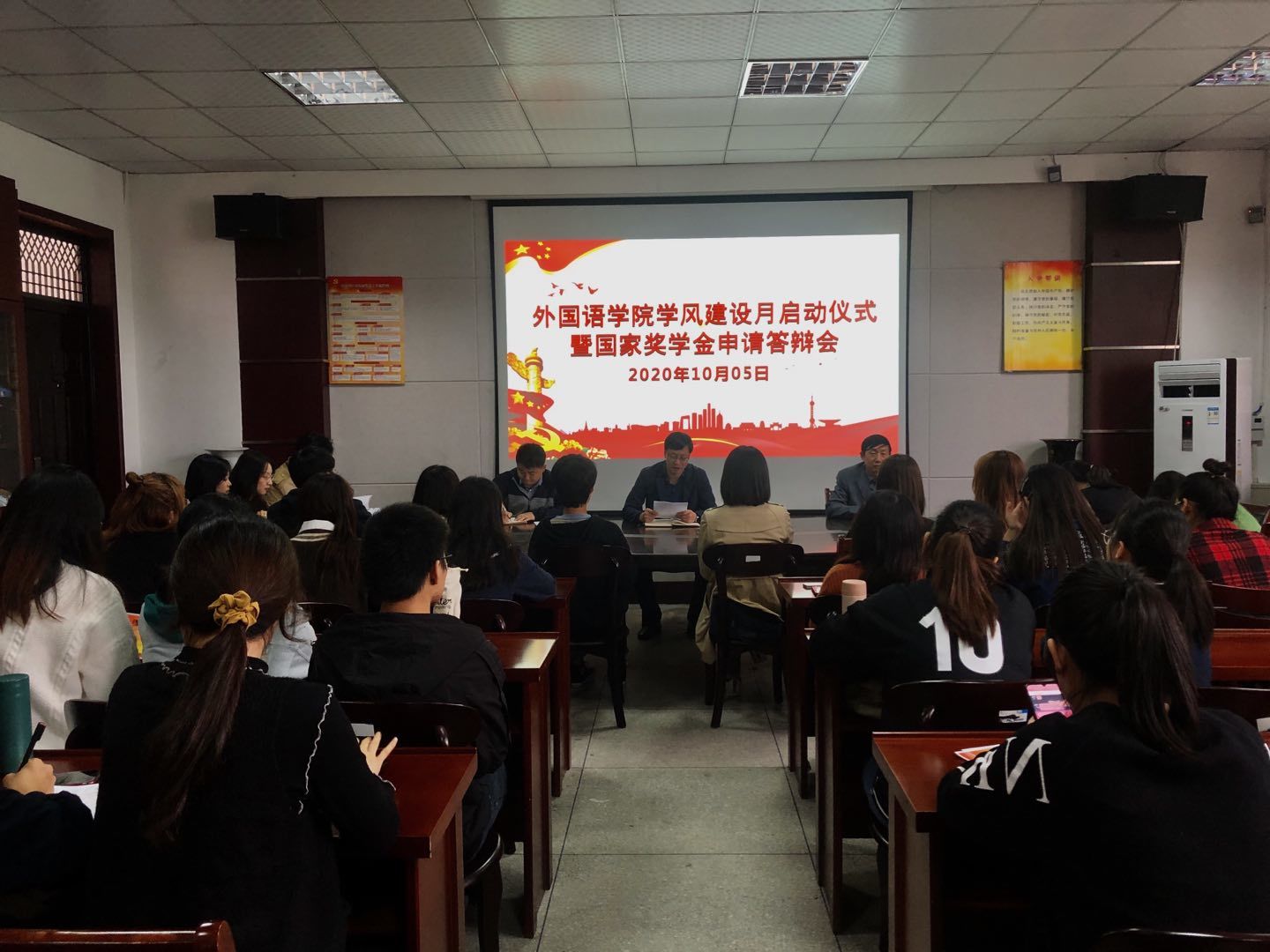 在学风建设月启动仪式后,开展了19-20学年国家奖学金申请答辩会。