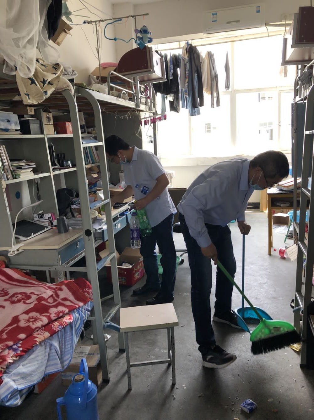 5月11日,大数据与人工智能学院开展迎接学生返校“暖心行动”,学院党政领导班子带领全体行政人员和辅导员对全院返校学生近30间学生寝室进行大清扫,守护学生返校。