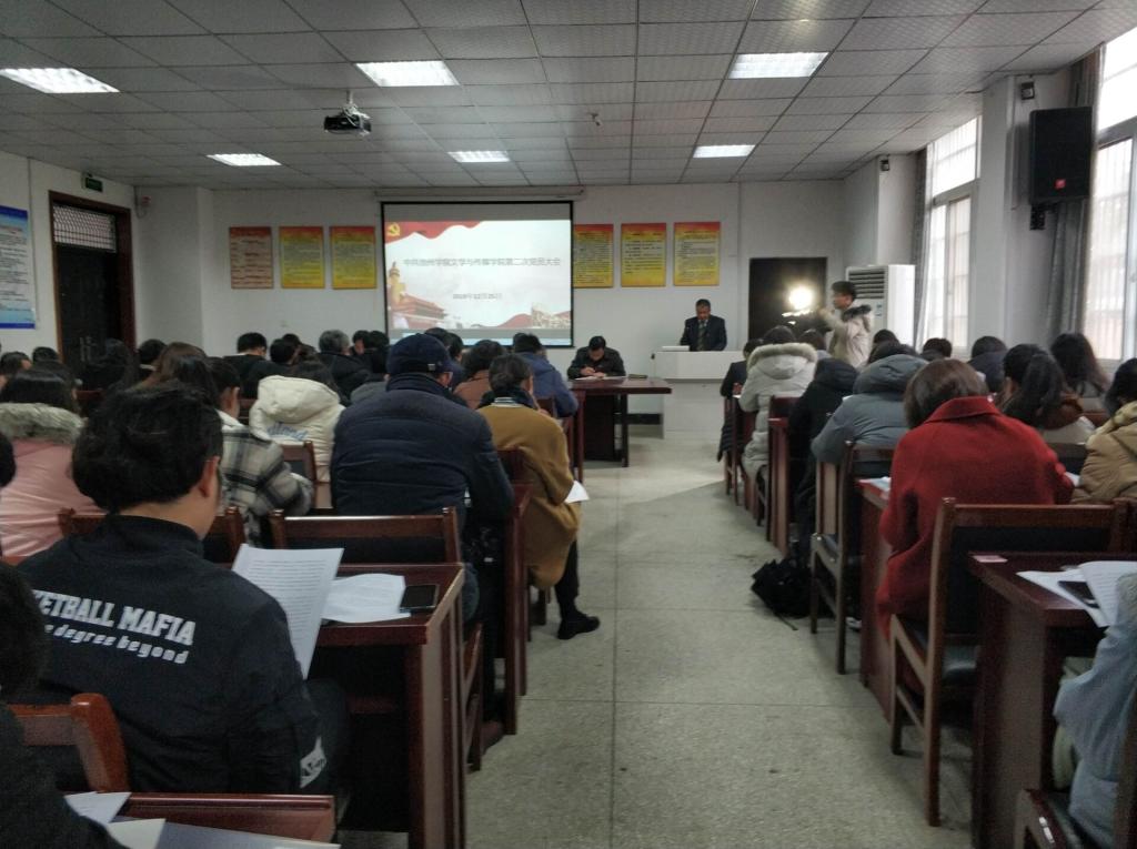 12月25日,中共beat365在线唯一官网登录文学与传媒学院第二次党员大会在博物北一楼会议室举行。学院全体党员参加会议。会议由院长刘光明主持。