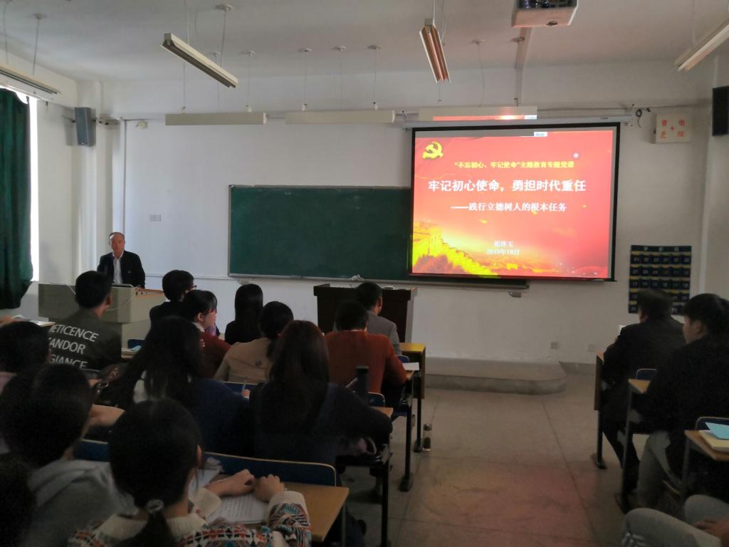 10月30日下午,地理与规划学院党委在博古南301多媒体教室召开全体师生党员大会,开展“不忘初心、牢记使命”主题教育专题党课活动。