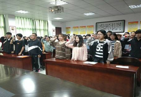 新团员入团环节在庄严的国歌声中拉开帷幕,在刘波宣读了新团员名单后、冯淑慧为新团员代表颁发团员证并佩戴团徽。新老团员代表徐家豪、张颖先后上台发言。冯淑慧要求团员要有理想,有钻研精神,加强修养,锤炼品格,勤奋学习,做一名合格优秀的共青团员。