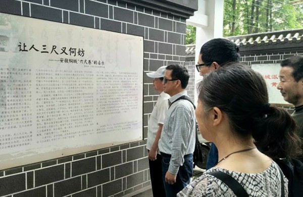“六尺巷”的故事在桐城广为流传,人们无不感叹张英的胸怀气度,这不仅是中华美德的体现,更是严于律己,清清白白做人的典范。社员们在六尺巷触摸历史遗迹,感悟礼让、廉洁的高尚情操,接受了一次深刻的思想洗礼。
