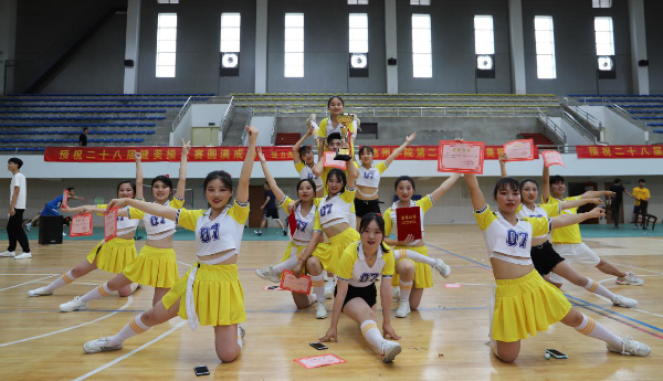 大赛中他们以明快奔放的动作挥洒出青春的风采,新颖别致的造型展现出力与美的结合,整齐而灵动的队列诠释了青春的激扬与奔放,他们用舞姿谱写自由的篇章。精彩表演的背后是他们近一个月坚持不懈的练习,精益求精的打磨和推敲,最终才能在大赛中拔得头筹。
