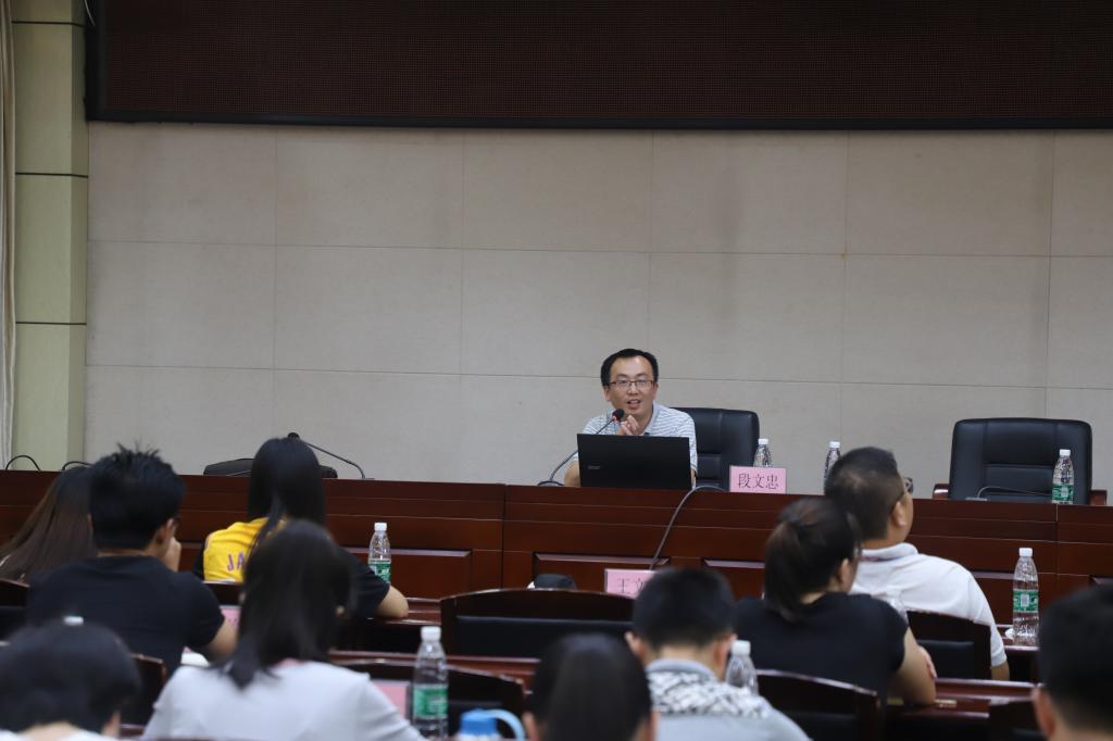 8月13日下午,根据安徽省高等学校师资培训中心统一安排,安徽省时代楷模、安徽商贸职业技术学院段文忠教授到池州市培训点beat365在线唯一官网登录为2019年新入职教师作题为《守初心、担使命、青年教师自我觉醒与成长》专题讲座,70余名新入职教师参加活动。