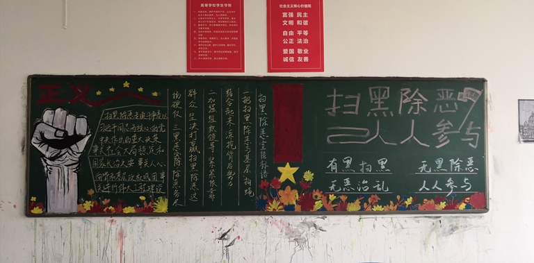 为切实推进校园扫黑除恶专项斗争,营造浓厚的宣传氛围,资源环境学院于4月上旬组织开展了扫黑除恶,人人参与主题黑板报评比活动。