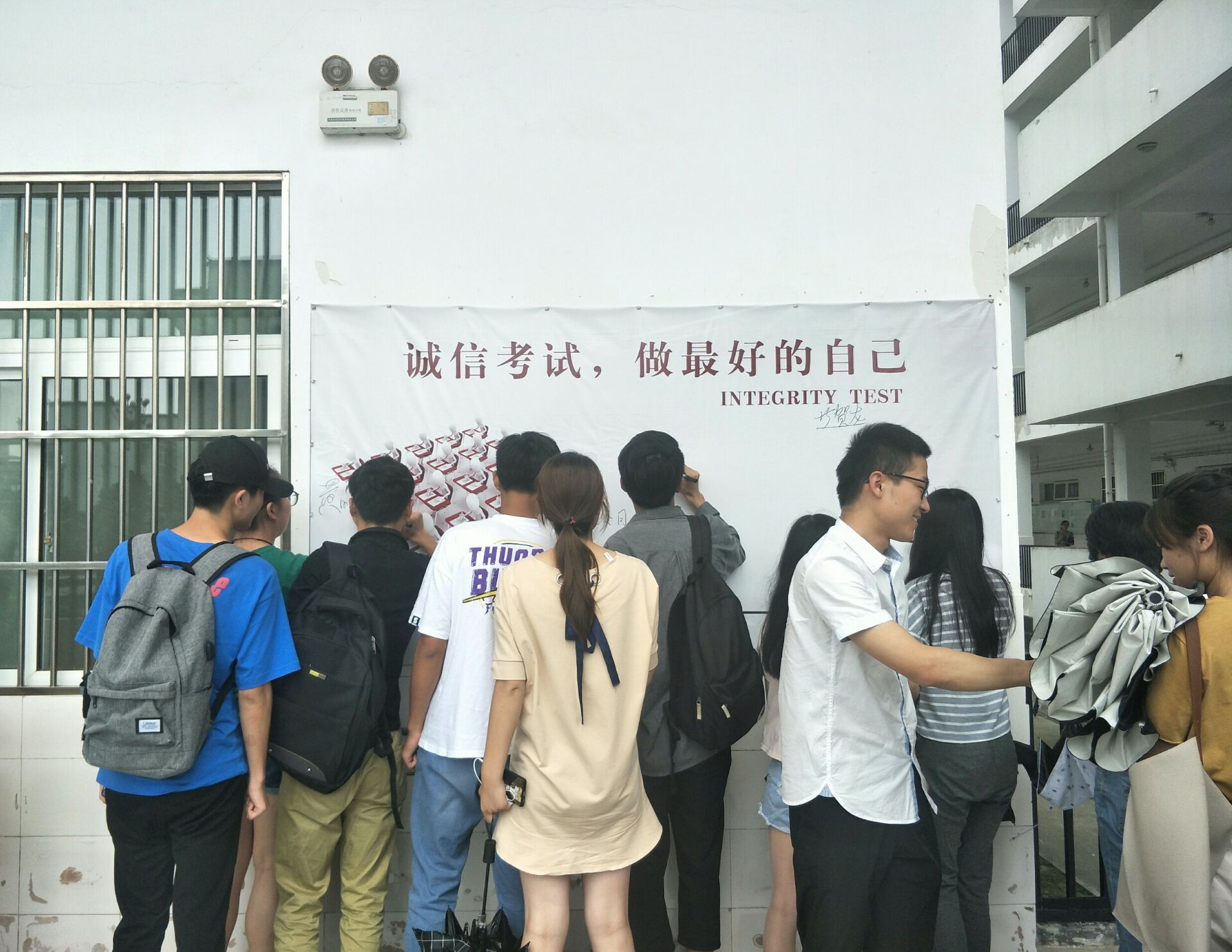 会后,同学们在诚信考试签名墙处,郑重地签下了自己的名字,许下诚信考试的承诺。