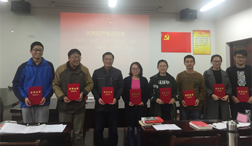 支部民主推荐和评议、学院党总支研究,决定授予时国平、程慧、袁力、姚大杰、杨春、何竞旻、汪甜甜、汪婷婷、左铖等9位同志“优秀共产党员”称号。院领导为获奖的个人颁发证书和奖品。