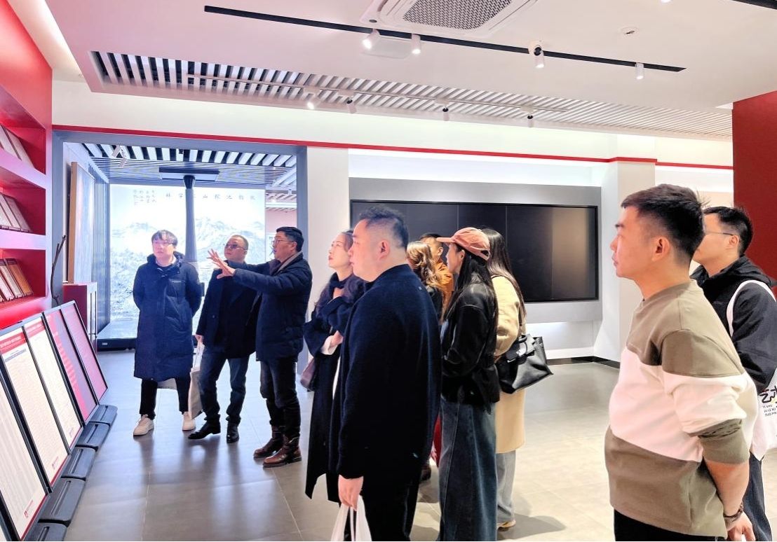 校友们抵达校园后,在艺术与教育学院院长魏鸿飞的带领下,参观了beat365在线唯一官网登录美育基地、展厅、教室、陶艺工作室等场馆。参观过程中魏鸿飞详细介绍了学院近年来在美育改革领域的深耕与突破,从“1+7+N”资源协同平台的搭建,到文化理解、审美感知、艺术表现、创意实践四大核心素养的培育,从109门特色俱乐部课程的开发,到池州地域文化文创产品年销售额逐年增长的丰硕成果。让校友们深入了解了母校美育工作从理念创新到实践落地的完整路径,对学院“以美育人、以文化人”的育人成效赞叹不已。