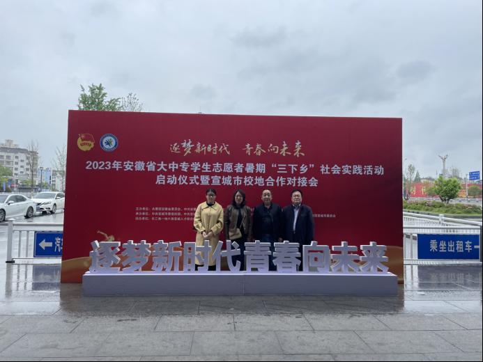 4月24日上午,2023年安徽省大中专学生志愿者暑期“三下乡”社会实践活动启动仪式暨宣城市校地合作对接会在宣城举行。校团委书记程海峰、学生处副处长吴继承、旅游与历史文化学院党委副书记杨祖勇应邀出席会议。