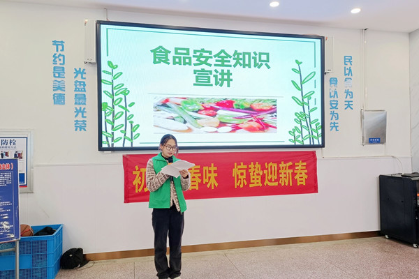 在食品安全教育活动环节,主持介绍了食品安全知识,并通过问答方式和同学们进行了互动。活动拓展了同学们的食品安全知识,并在学校营造了“共建健康食堂,同铸食品安全”的良好氛围。